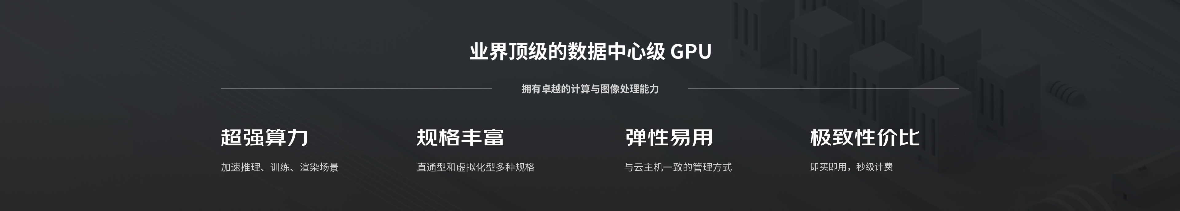 GPU 云主機采用和云主機完全一致的管理方式,功能強大,簡單易用,按需彈性擴縮容。更可搭配多種高性能存儲產品,快速搭建云上高可用的 GPU 集群,體驗極致的計算性能。
