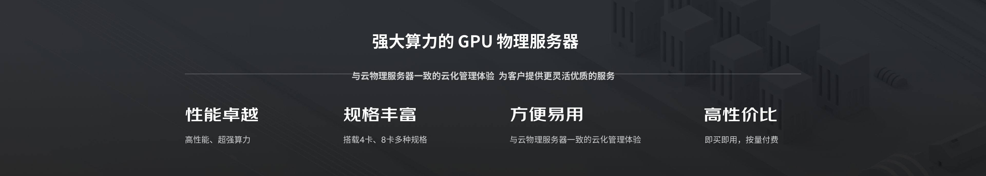 最新推出4卡、8卡規(guī)格,提供多種不同配置GPU物理服務器,無虛擬化性能損耗,滿足客戶的不同業(yè)務需求場景。